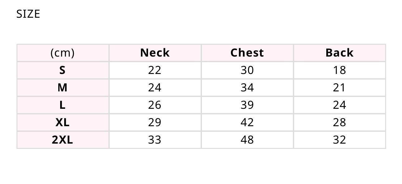 2XL:首周り33㎝ 胸囲48㎝ 背丈32㎝