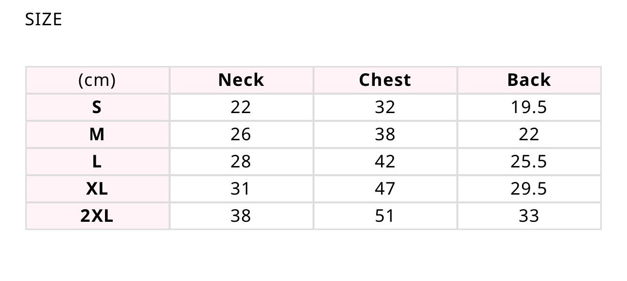XL:首周り31㎝ 胸囲47㎝ 背丈29.5㎝