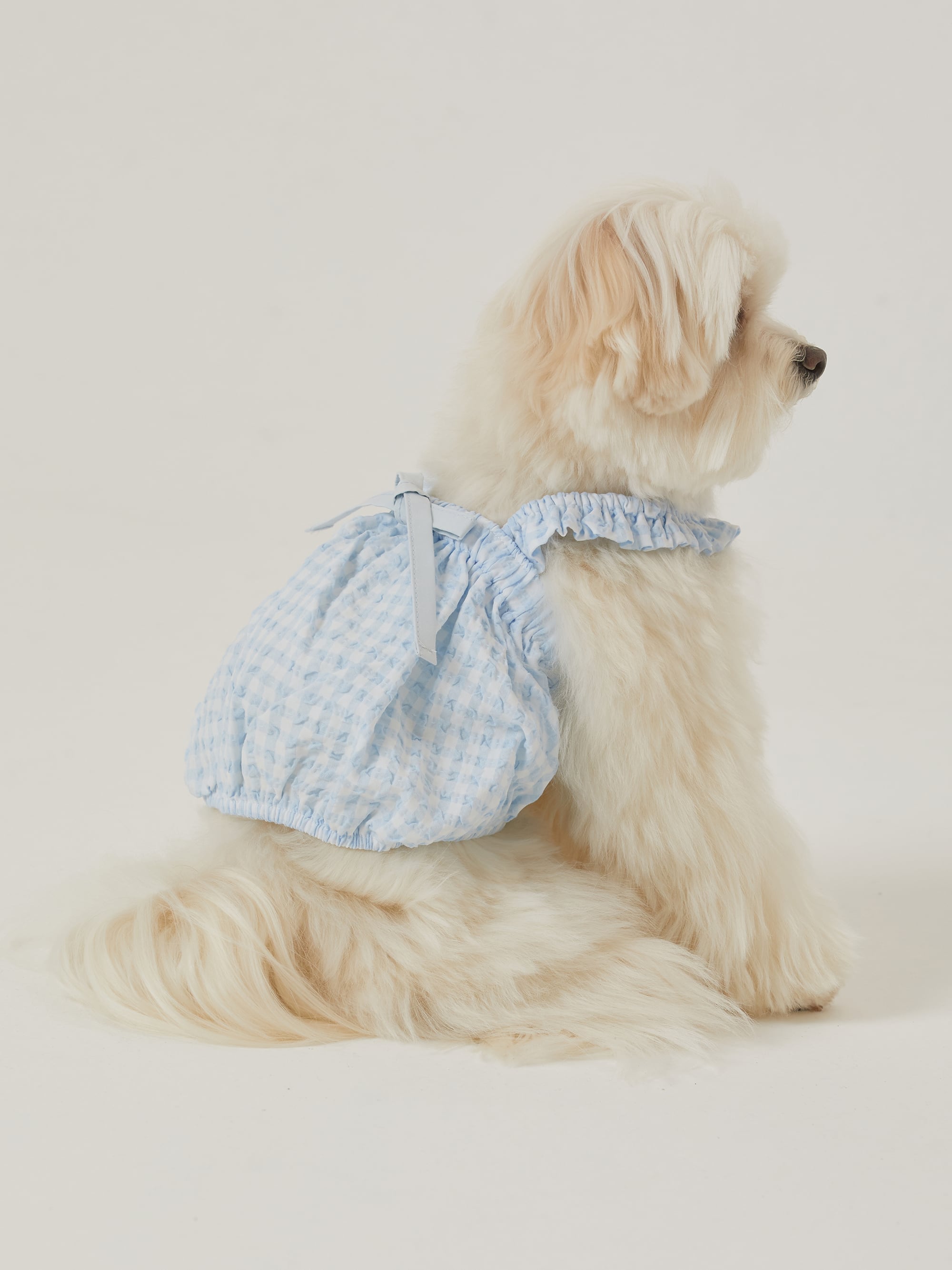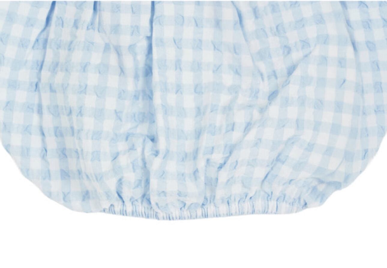 ・柔らかなベビーブルーが際立つチェック柄